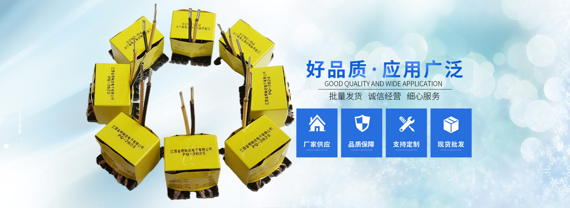 江西省明瑞達電子有限公司座落于江西省贛州市石城縣,是一家研發、生產、銷售各種變壓器廠商。生產銷售、技術服務、產品研發為一體的綜合性企業,主要生產、銷售產品:變壓器(EE型、ER型、PQ型、RM型、POT型、UU型、DR型等產品),主要適用于:開關電源、適配器、機頂盒、液晶電視、空調、冰箱、LED、電腦、音箱、DVD、飲水機、電磁爐等各種家用電器及航空、醫療事業。